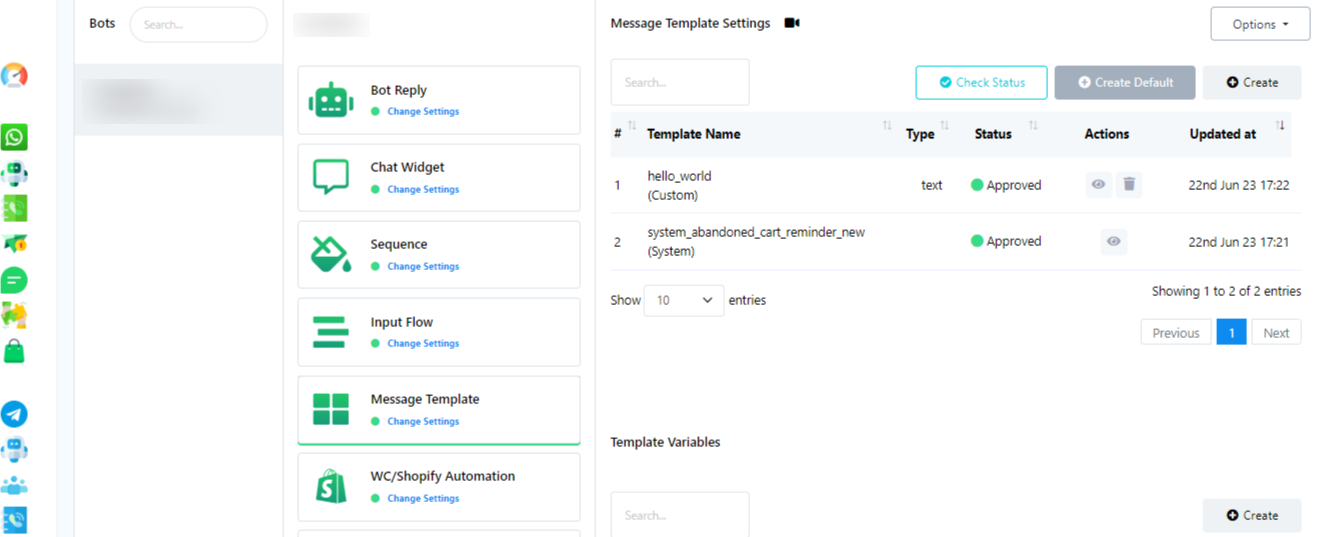 - Go to PrimeX Group WhatsApp Dashboard and navigate to the Bot manager section.